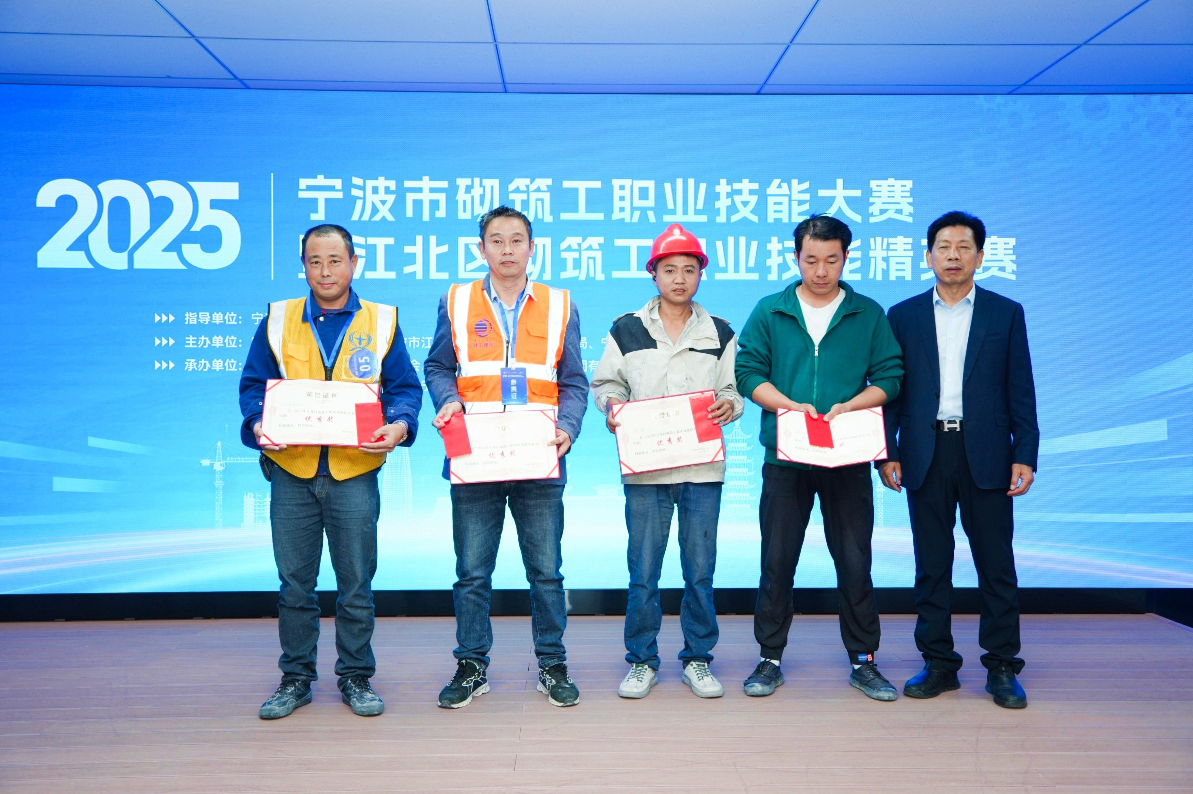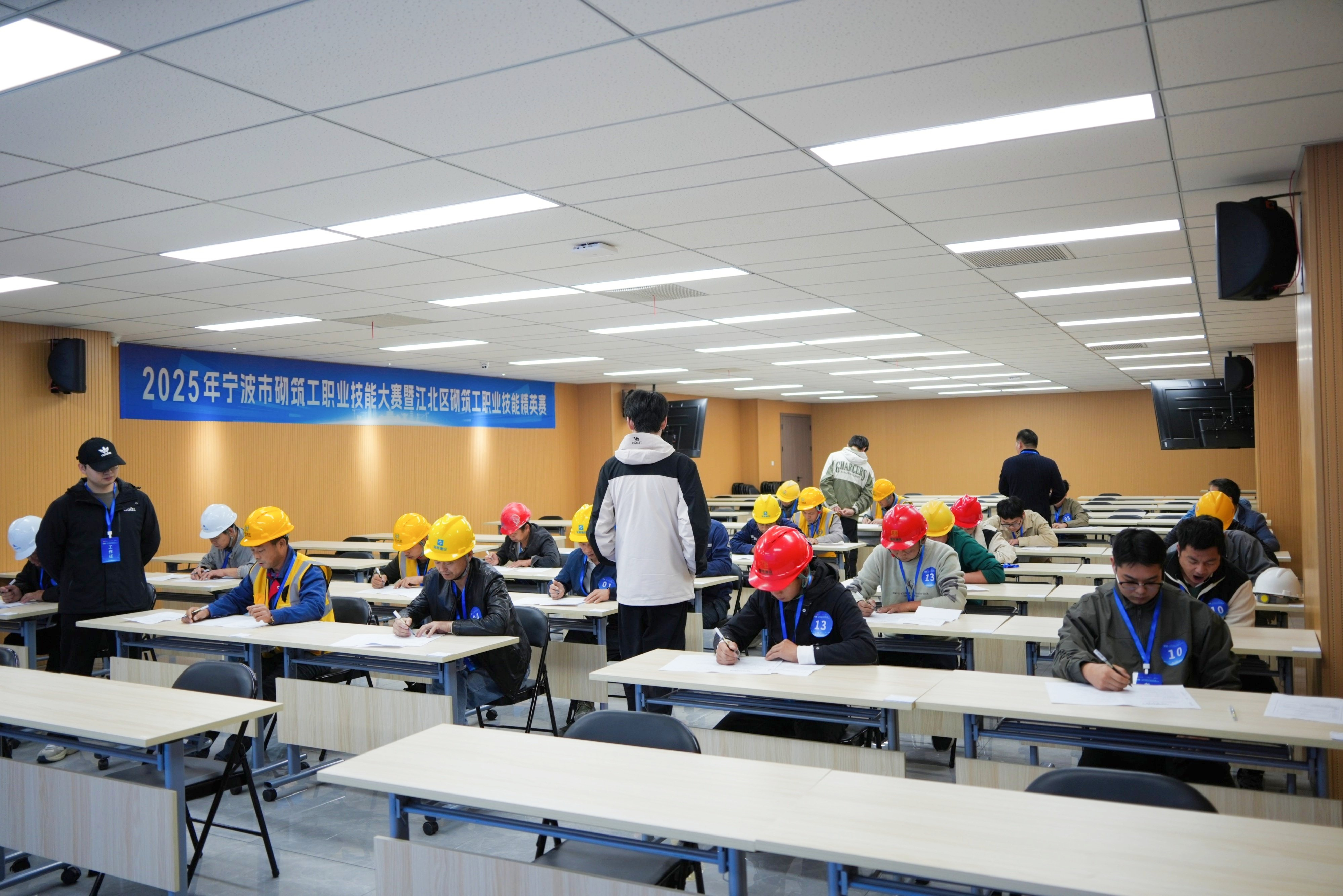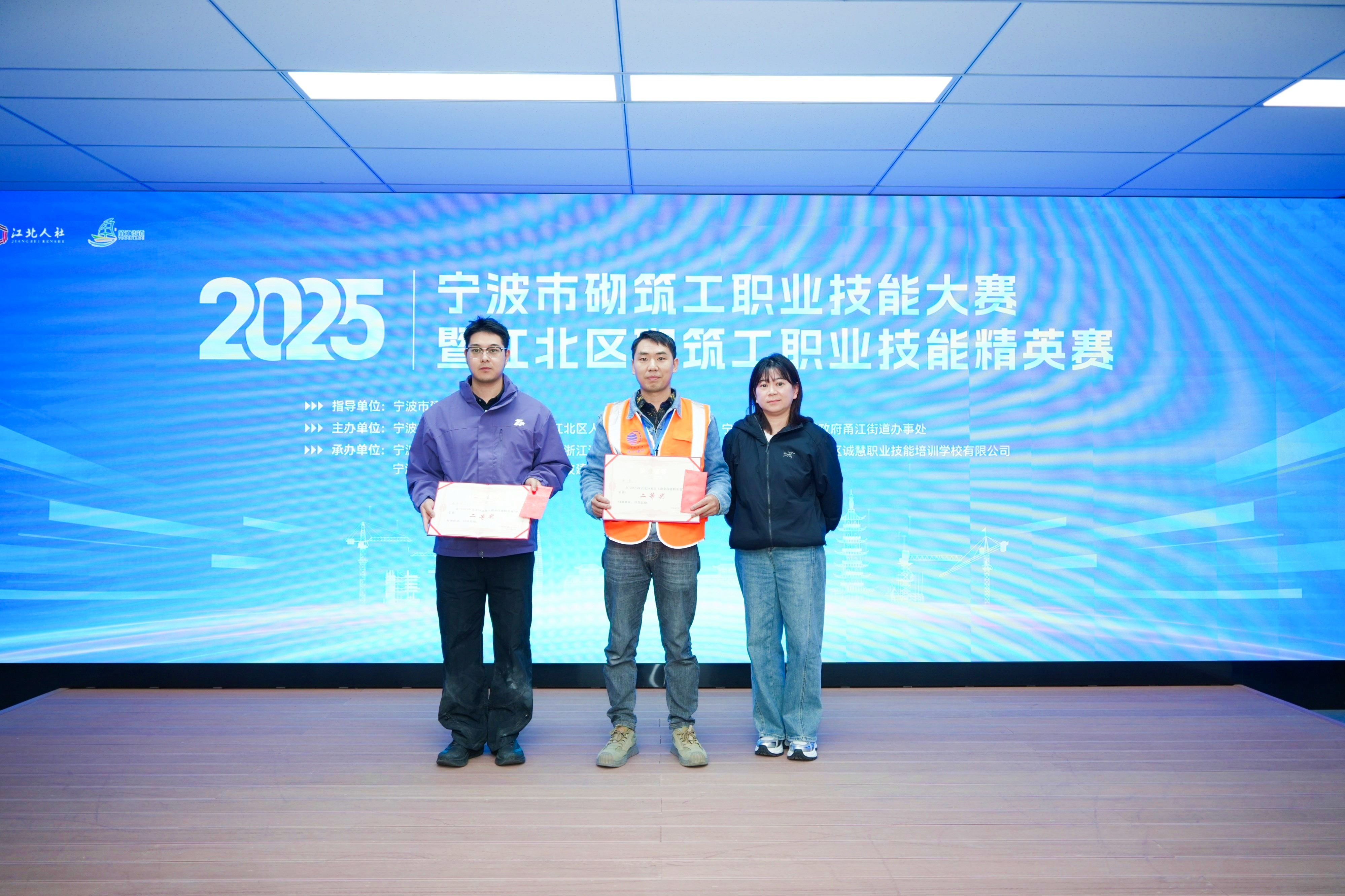 为积极响应国家培育高素质技能人才的号召,践行企业社会责任,11月11日,“2025年宁波市砌筑工职业技能大赛暨江北区砌筑工职业技能精英赛”在诚慧学校实训基地成功举行。本次大赛由江北区总工会主办,甬江街道总工会、诚晖集团、诚慧培训学校、建筑服务产业园工联会、宁波建筑工匠学院联合承办,宁波市建筑业协会指导,汇聚了来自10家建筑企业的26名砌筑技术精英同台竞技。