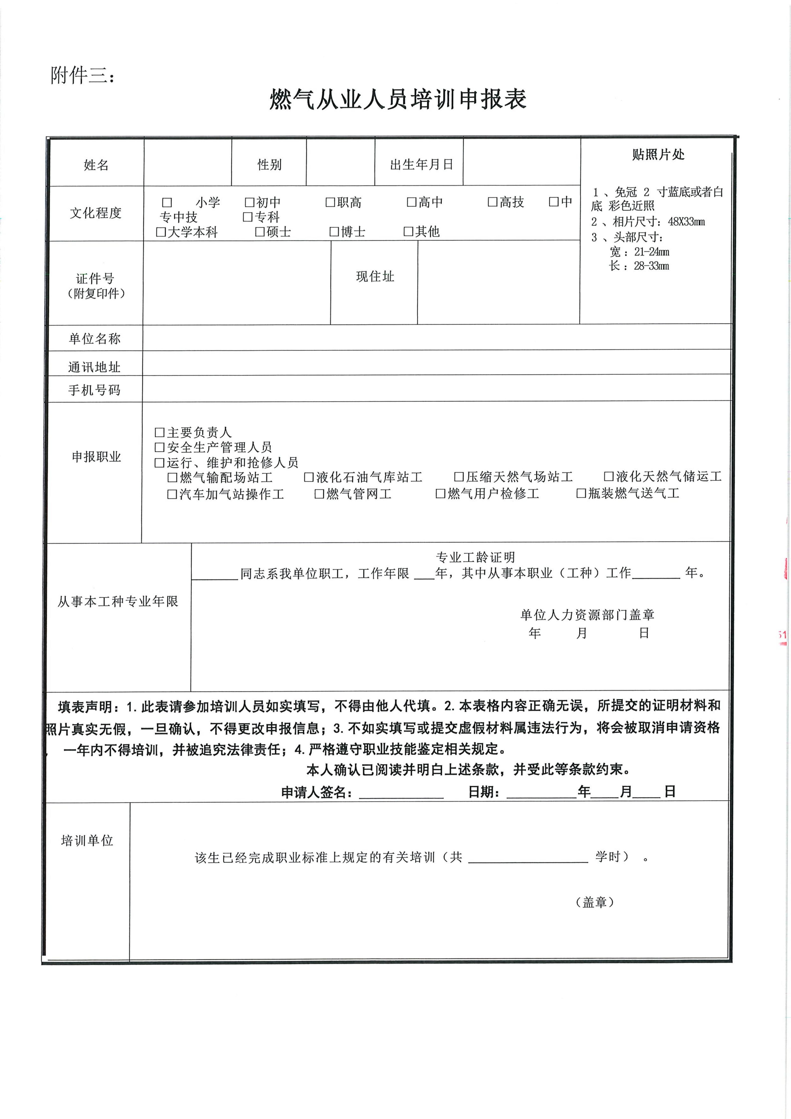 1、拟申请《燃气经营企业从业人员专业培训考核合格证书》的燃气经营企业主要负责人,安全生产管理人员,运行、维护和抢修人员。