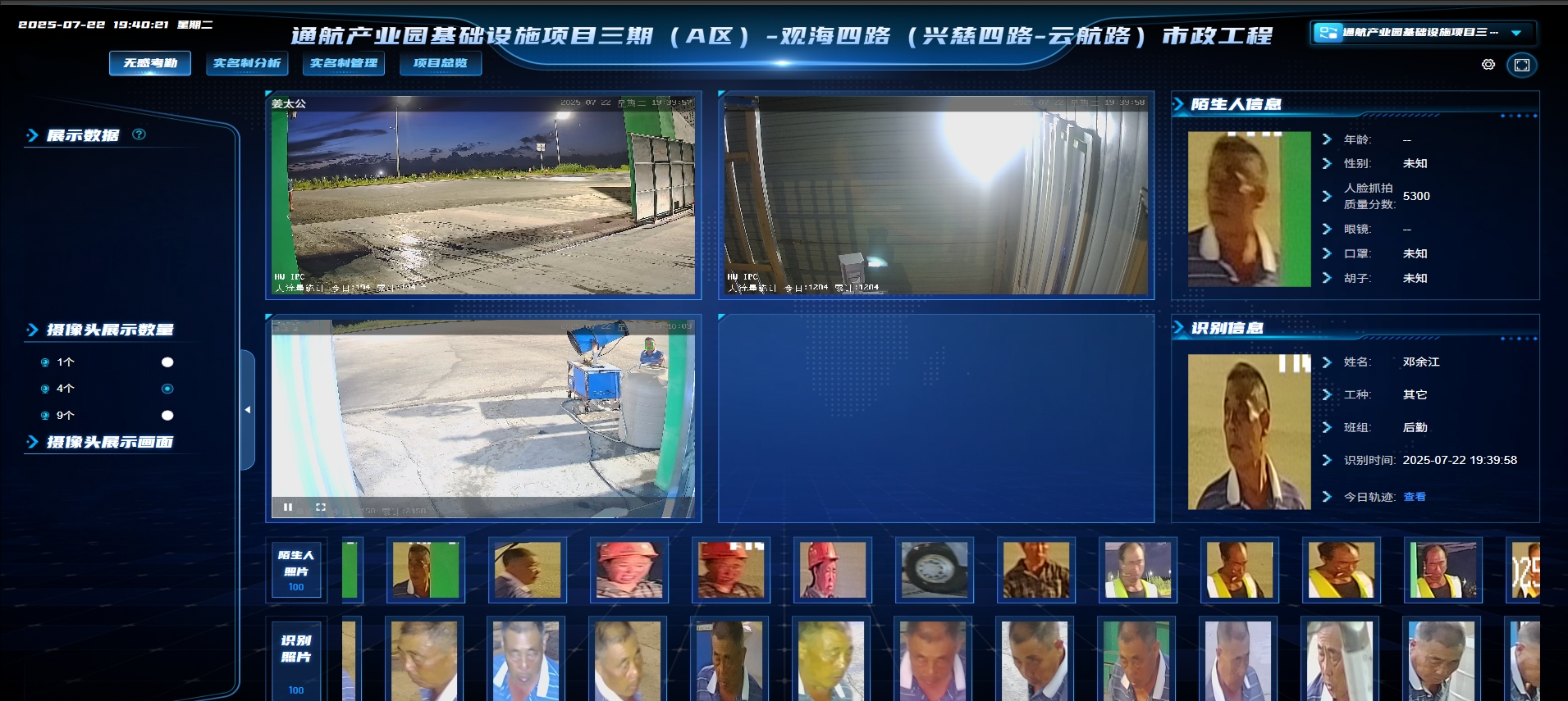 在观摩会现场,卓众公司工作人员首先向参会领导重点介绍了"无感考勤"的创新实践。该系统运用"AI人脸识别+物联网智能终端"技术,实现施工人员进出现场信息的自动抓拍与实时上传,确保考勤数据“零干预、零误差、零遗漏”。与传统打卡方式相比,“无感考勤”全程无需人工操作,大幅度提升管理效率。