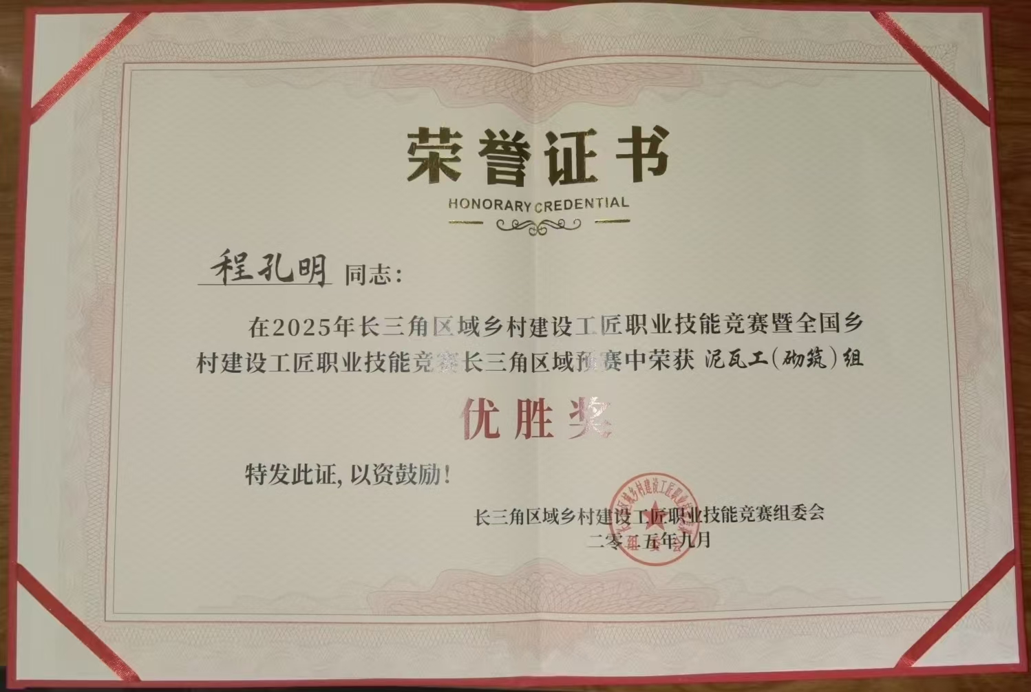 诚晖集团选手在2025长三角区域乡村建设工匠职业技能竞赛斩获佳绩