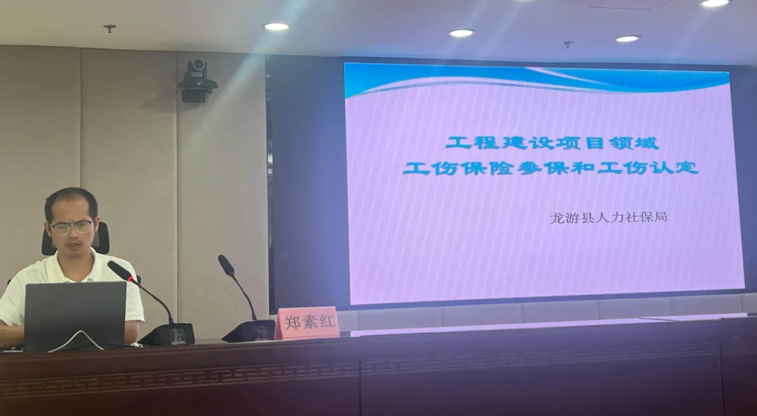 随后,县工伤科科长黄家驹全面介绍了工程建设领域工伤保险政策与工伤认定流程,助力企业提升工伤风险防范与应对处置能力。