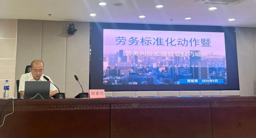 最后,作为唯一受邀的企业代表,跃升劳务公司总经理周朝青围绕“劳务标准化动作与劳务纠纷处理技巧”展开实战培训。他从人员进场、合同管理到工资发放全流程入手,系统介绍标准化管理方法,并结合实际纠纷案例,传授“预防在先、沟通为要、依法调处”的劳务管理经验,为参训人员提供了可复制、可落地的管理方案。