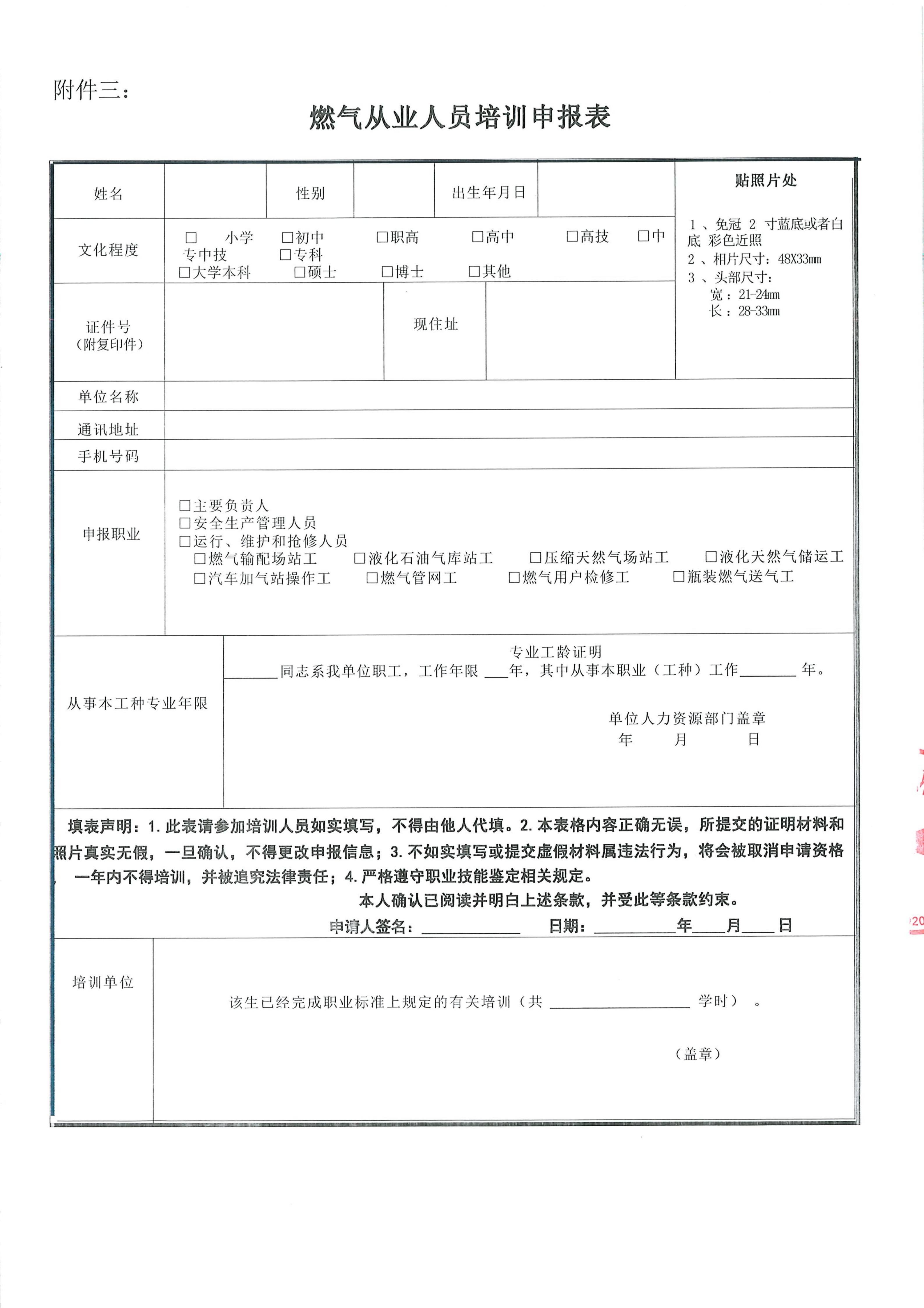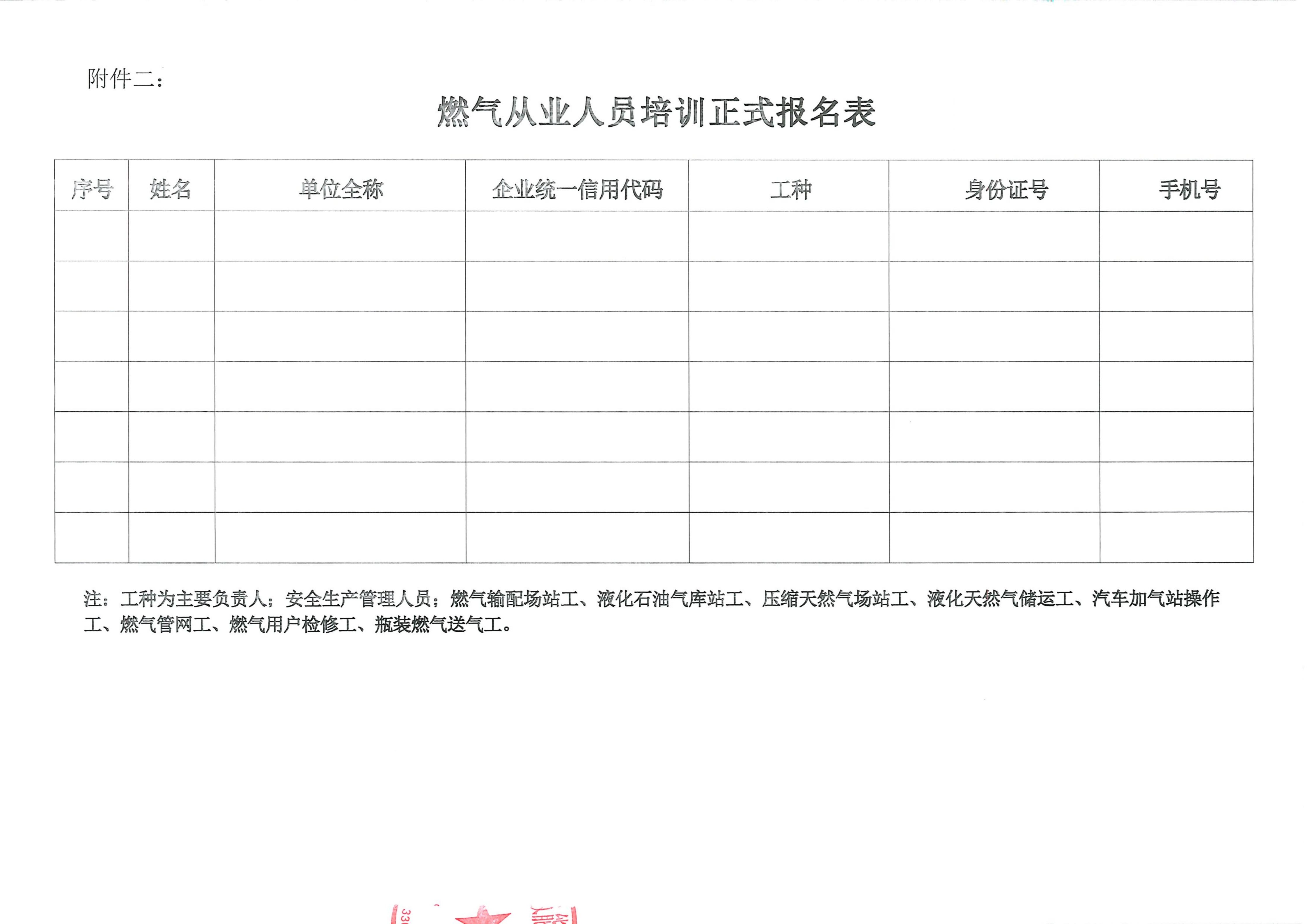 1、拟申请《燃气经营企业从业人员专业培训考核合格证书》的燃气经营企业主要负责人,安全生产管理人员,运行、维护和抢修人员。