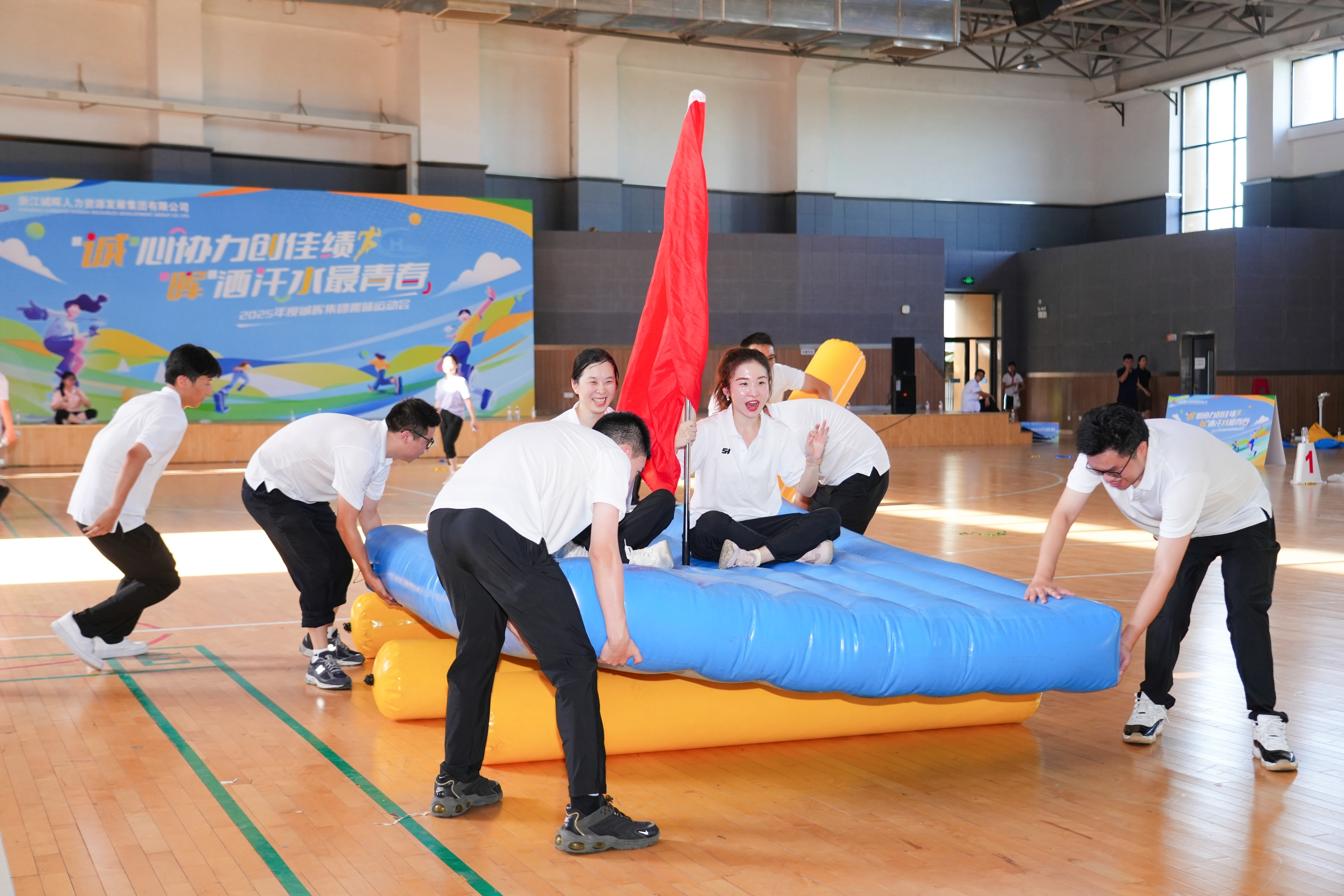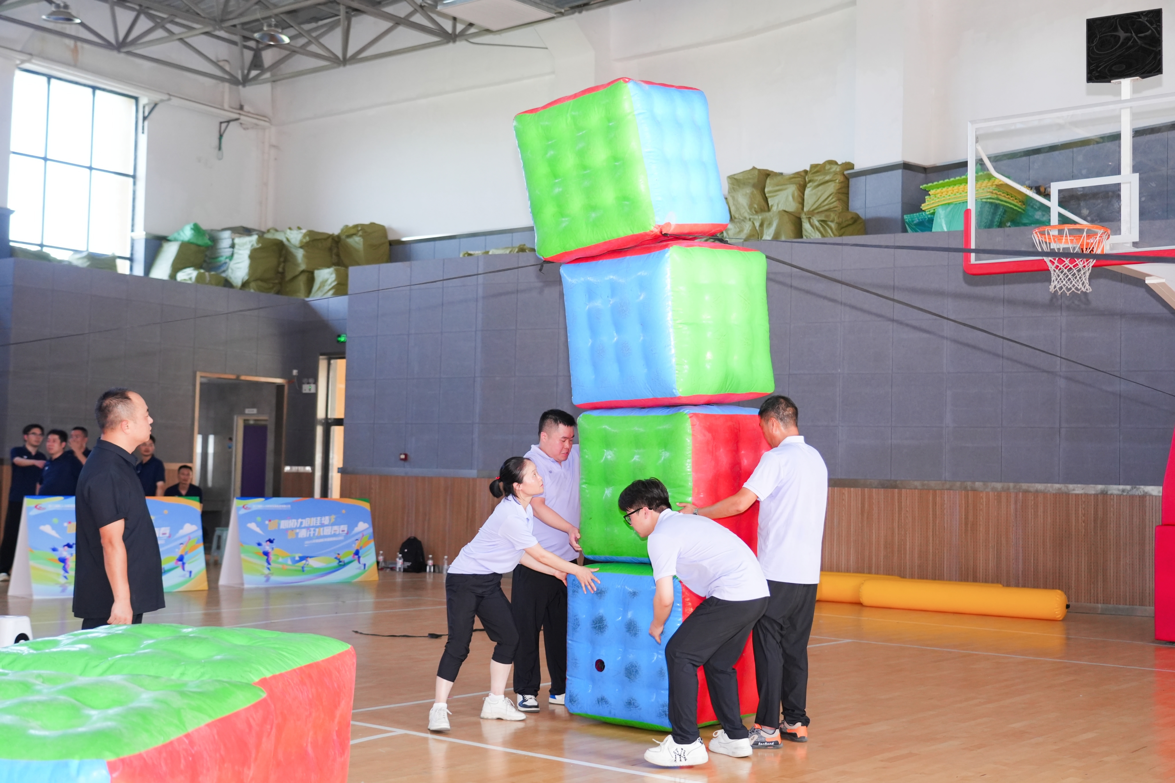 本次活动采取团体赛制,参赛员工分为9支队伍,依次参与“百舸争流”、“扬帆起航”、“步步高升”、“勇立潮头”、“万众一心”及“砥砺前行”六个趣味项目。最终按累计总分决出胜负。