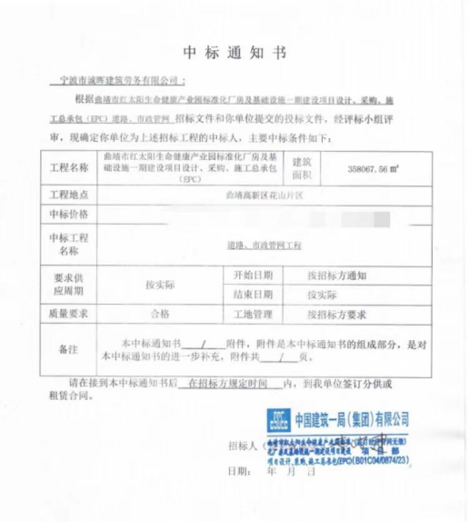 项目中标通知书