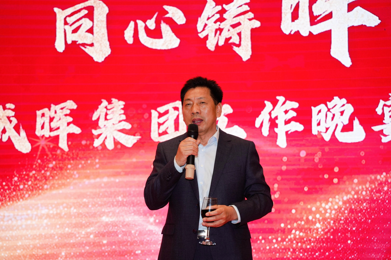 诚晖集团董事长张尚华发表晚会致辞,并带领大家共同举杯,祝愿集团在新的一年再创辉煌。