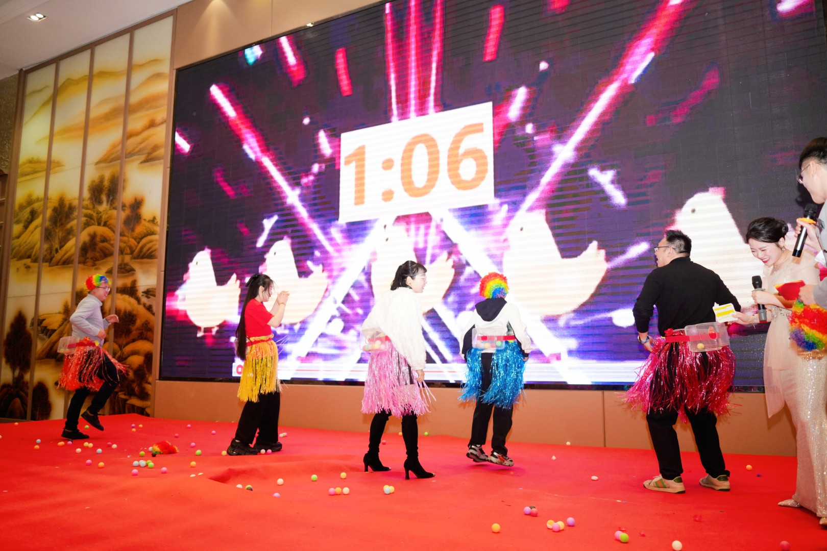 在张董致词结束后,舞台开始节目与游戏环节,现场气氛热烈、掌声不断。
